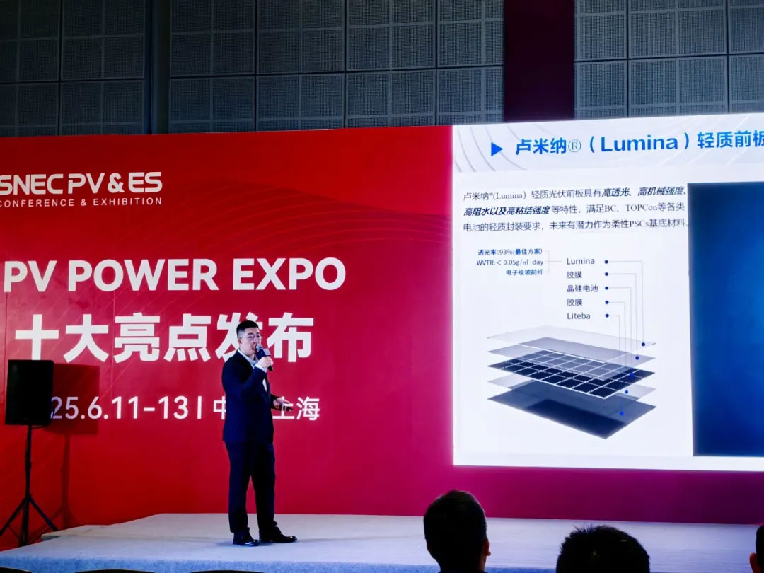 光伏業(yè)務總監(jiān)張瀟圍繞柔性光伏封裝的關鍵挑戰(zhàn),詳細介紹了盧米納®輕質(zhì)高透封裝前板的結構優(yōu)勢。該產(chǎn)品在保證柔性彎折特性的同時,具備優(yōu)異的抗黃變能力,為柔性組件提供穩(wěn)定可靠的封裝解決方案,助力輕量化光伏場景落地應用。